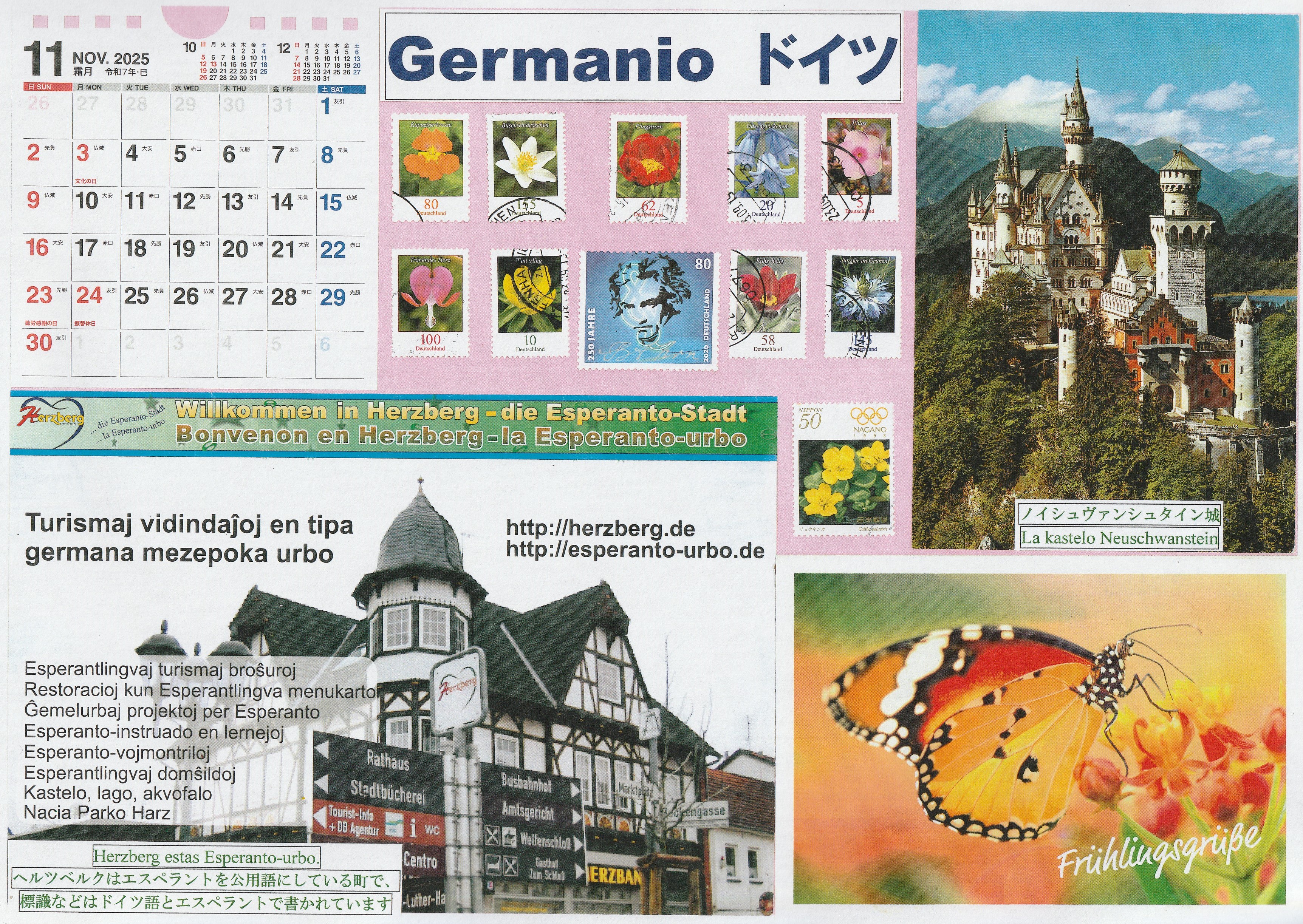 3. Kalendaro de novembro farita el poŝtkartoj kaj poŝtmarkoj el lGermanio. La pasintajn kalendarojn pri aliaj landoj vi povas vidi en mia fejsbuko.